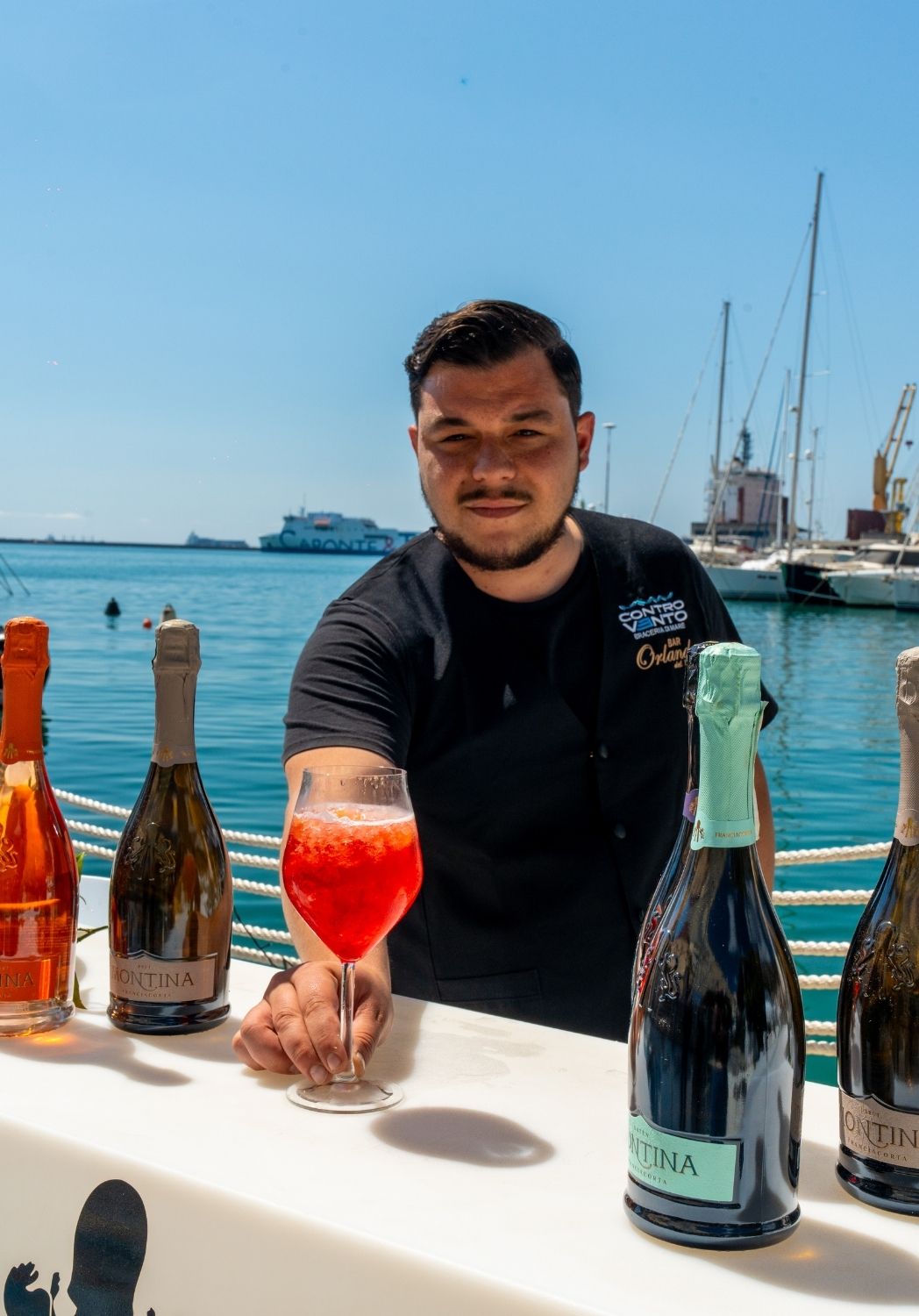 Ci sono momenti in cui Controvento cambia ritmo: un calice, qualcosa da condividere, il porto davanti e la luce che si abbassa. È il modo più naturale di entrare nella serata.