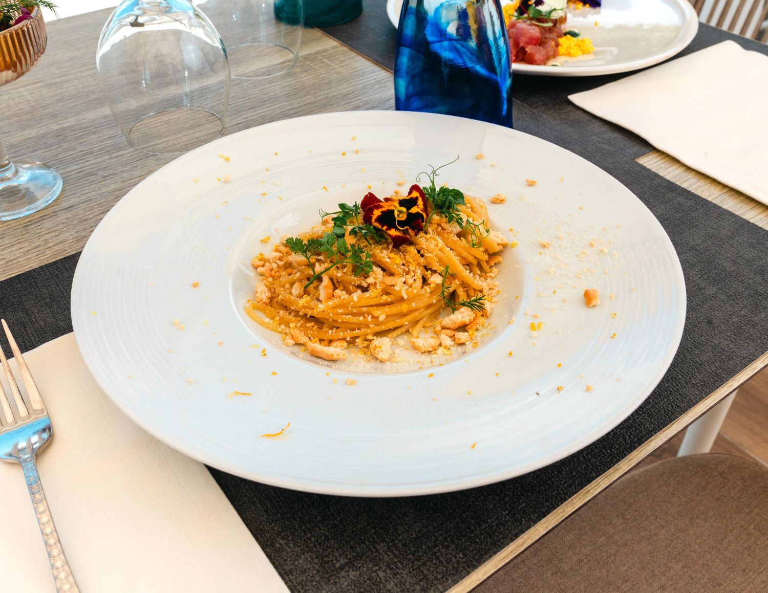 La cucina segue la stessa direzione, tra crudi, pescato, brace di mare e piatti pensati per essere scelti con piacere e condivisi con facilità.