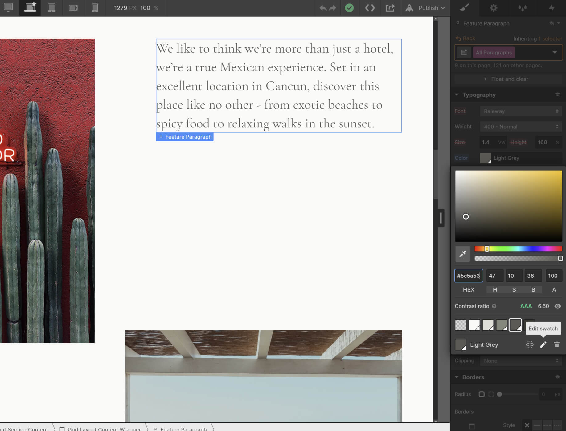Per fare questo, basta andare nella Style tab presente nella barra laterale a destra, poi scorrere fino a "Colors" nella sezione "Typography", e cliccando su qualsiasi colore, sarete in grado di vedere tutti i color swatches e modificarli per aggiornarli a qualsiasi colore necessario.
