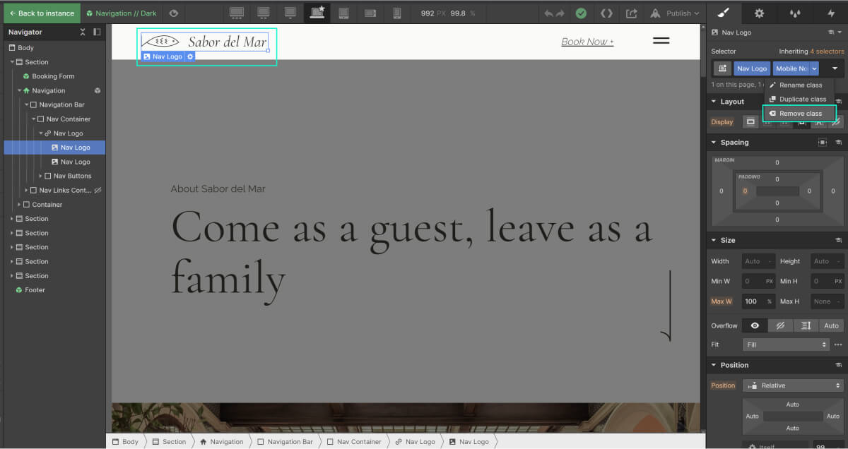 La barra di navigazione in questo template è completamente personalizzata. Sono presenti 2 versioni diverse del logo: la versione completa e quella più corta. La versione più corta consta solo del logotipo (ossia solo il testo, senza loghetto) ed è mostrata nella versione mobile. Se desideri invece avere 1 solo logo sia per mobile che per desktop, esegui i seguenti passi:
