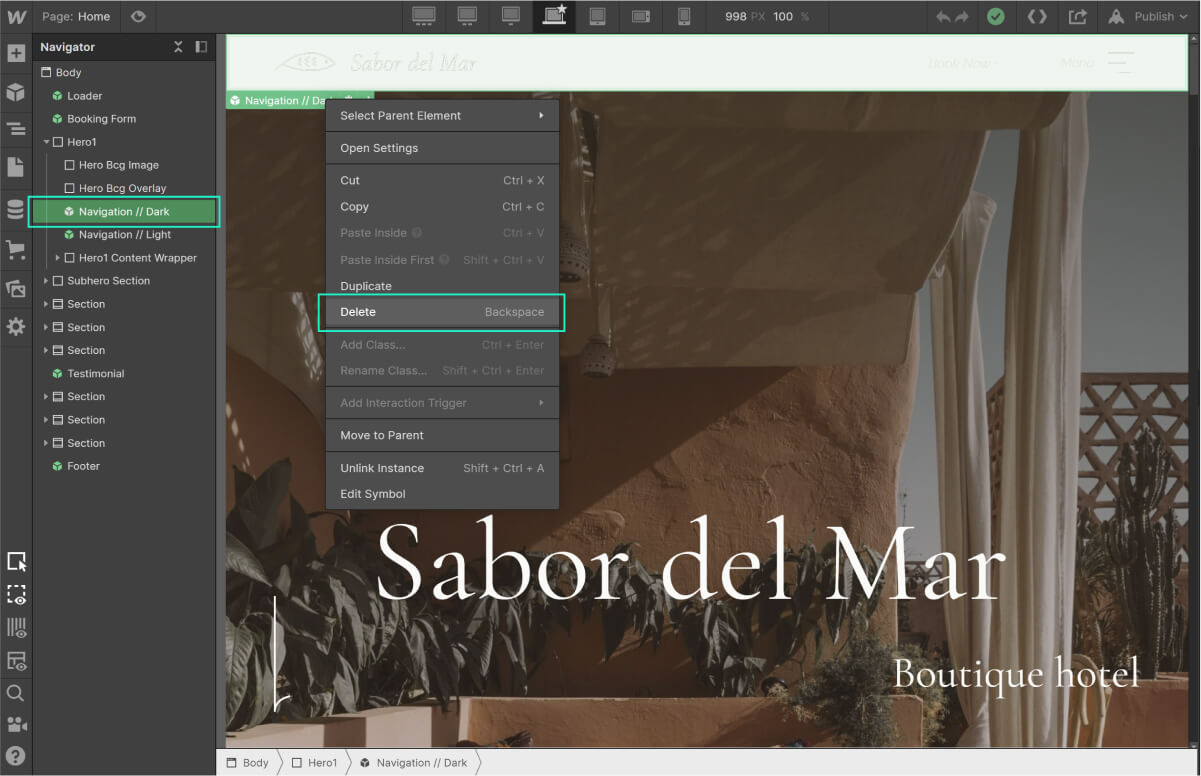 Cancella il simbolo "Navigation // Dark Symbol" dal Navigator