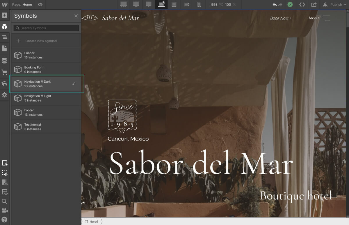 Aggiungi nuovamente la "Navigation // Dark" sulla pagina selezionandola dalla tab "Symbols"